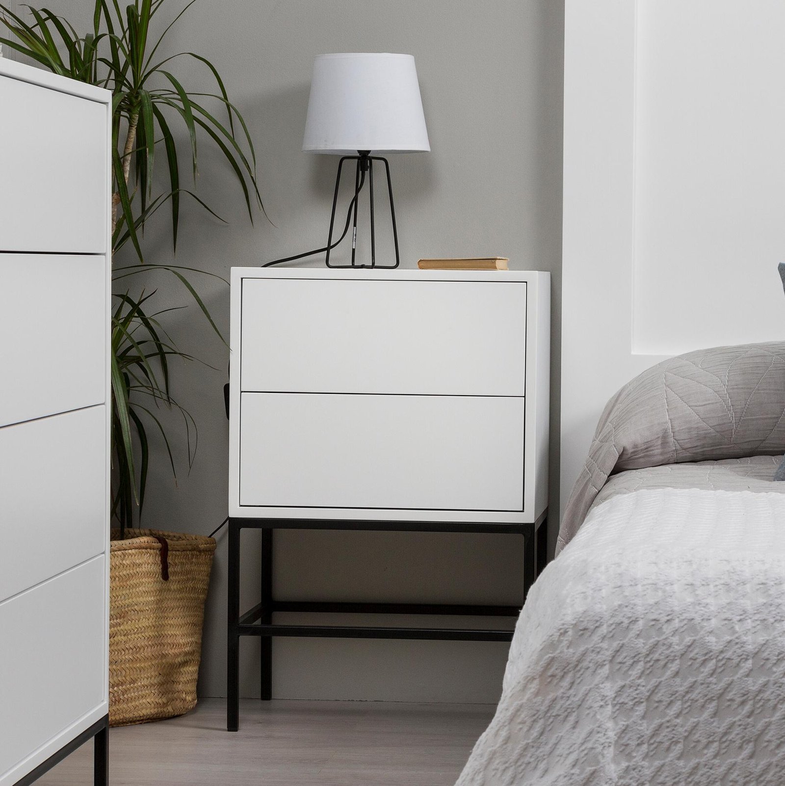 Mesa de Cabeceira Push 2 gavetas Lacado Branco Base Preta