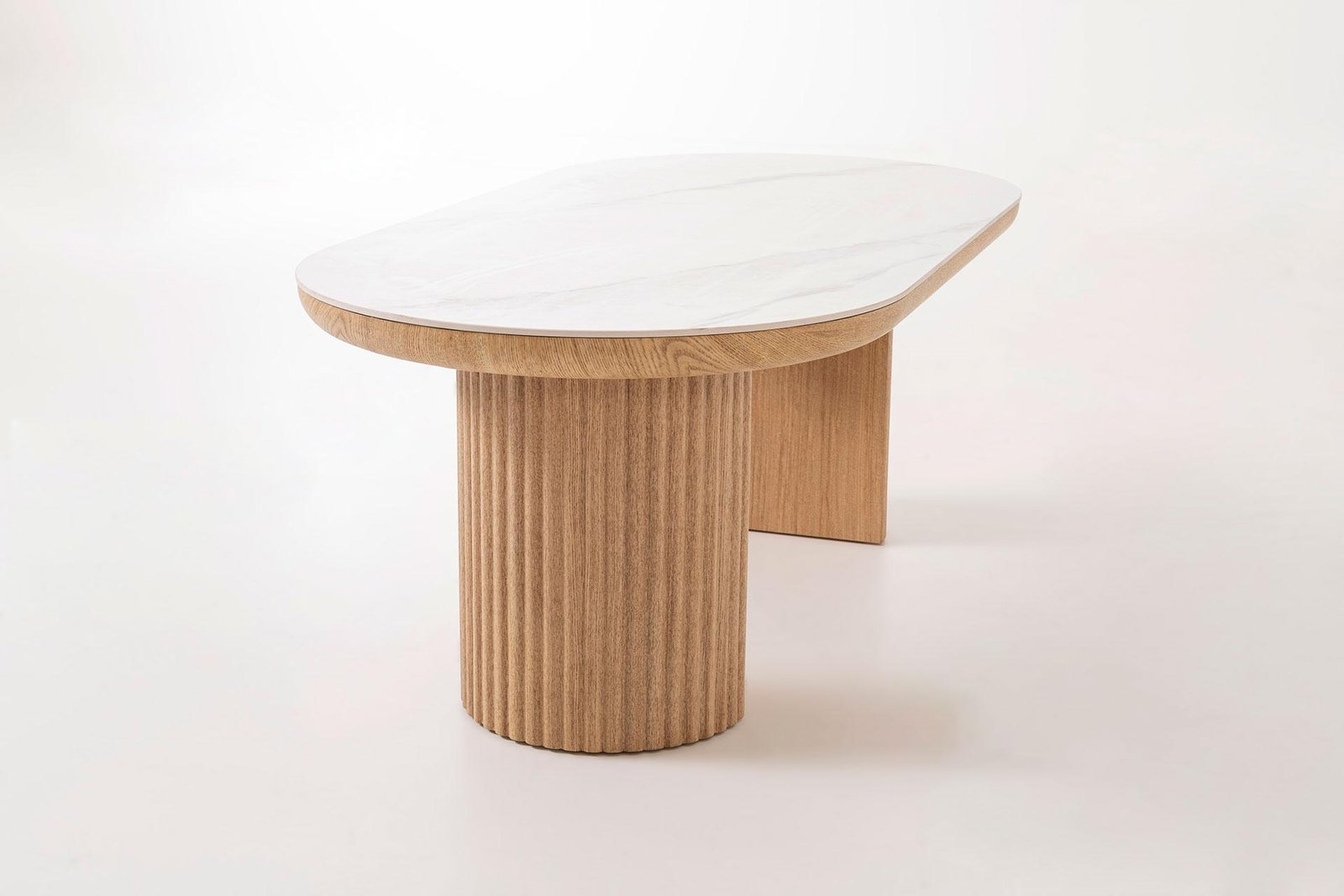 Esta mesa de centro de 120 x 45 x 60 cm combina estilo contemporâneo, funcionalidade e materiais de alta qualidade. O seu tampo em porcelana branca confere luminosidade, elegância e durabilidade, além de ser fácil de limpar e perfeita para o uso diário. A base em folheado de carvalho com ripas acrescenta um detalhe visual sofisticado e natural, trazendo aconchego e personalidade à sala de estar. Esta estrutura robusta garante estabilidade e durabilidade, mantendo a peça segura mesmo com o uso diário. Ideal para ser colocada em frente ao sofá, oferece espaço para tabuleiros, livros, objetos decorativos ou bebidas. A combinação de porcelana e madeira garante um design elegante e durável que se integra perfeitamente em qualquer ambiente moderno.